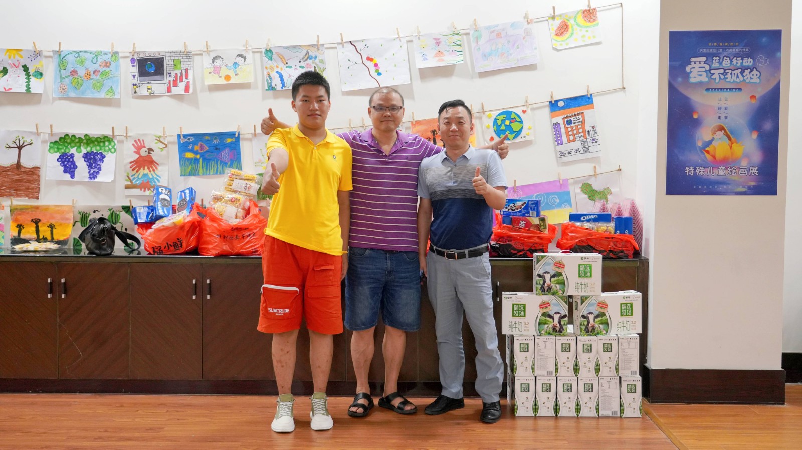 近日,我会理事、广东金水坊建设装饰有限公司董事长陈仙松来到基金会多功能厅,亲切看望残艺团小演员韩军羽,并为艺术团和合唱团的团员们送来饼干、面包、牛奶等爱心慰问礼品。