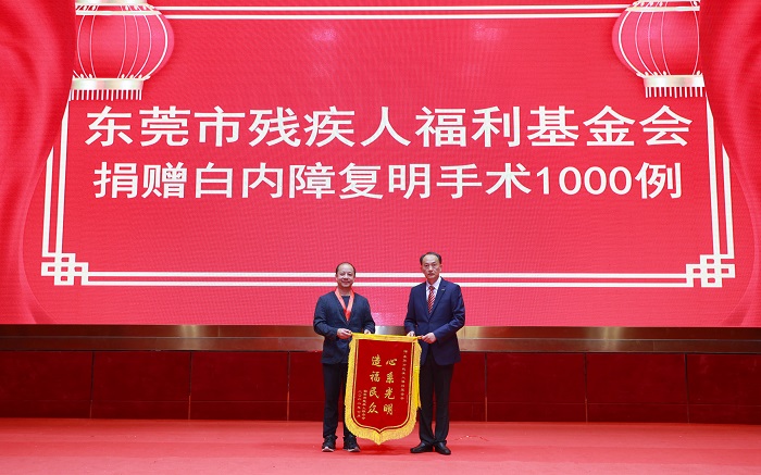 我会荣誉会长单位东莞益海嘉里赛瑞淀粉科技有限公司现场捐赠20万元,助力光明行活动。