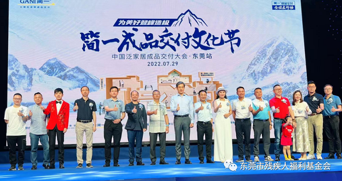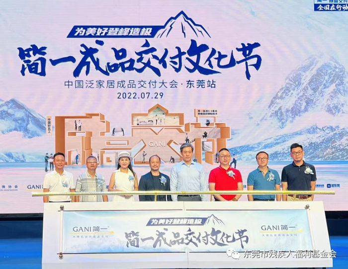 7月29日,由中国建筑装饰协会与GANI简一联合主办的“为美好登峰造极”——中国泛家居成品交付大会 · 东莞站活动在东莞市广播电视台举行。中国建筑卫生陶瓷协会秘书长宫卫、简一集团董事长李志林、东莞简一品牌服务商陈道钢、东莞市残疾人福利基金会理事长叶宝维、士格集团董事长周均、东莞广播电视台新媒体中心主任陈伟全等出席活动。