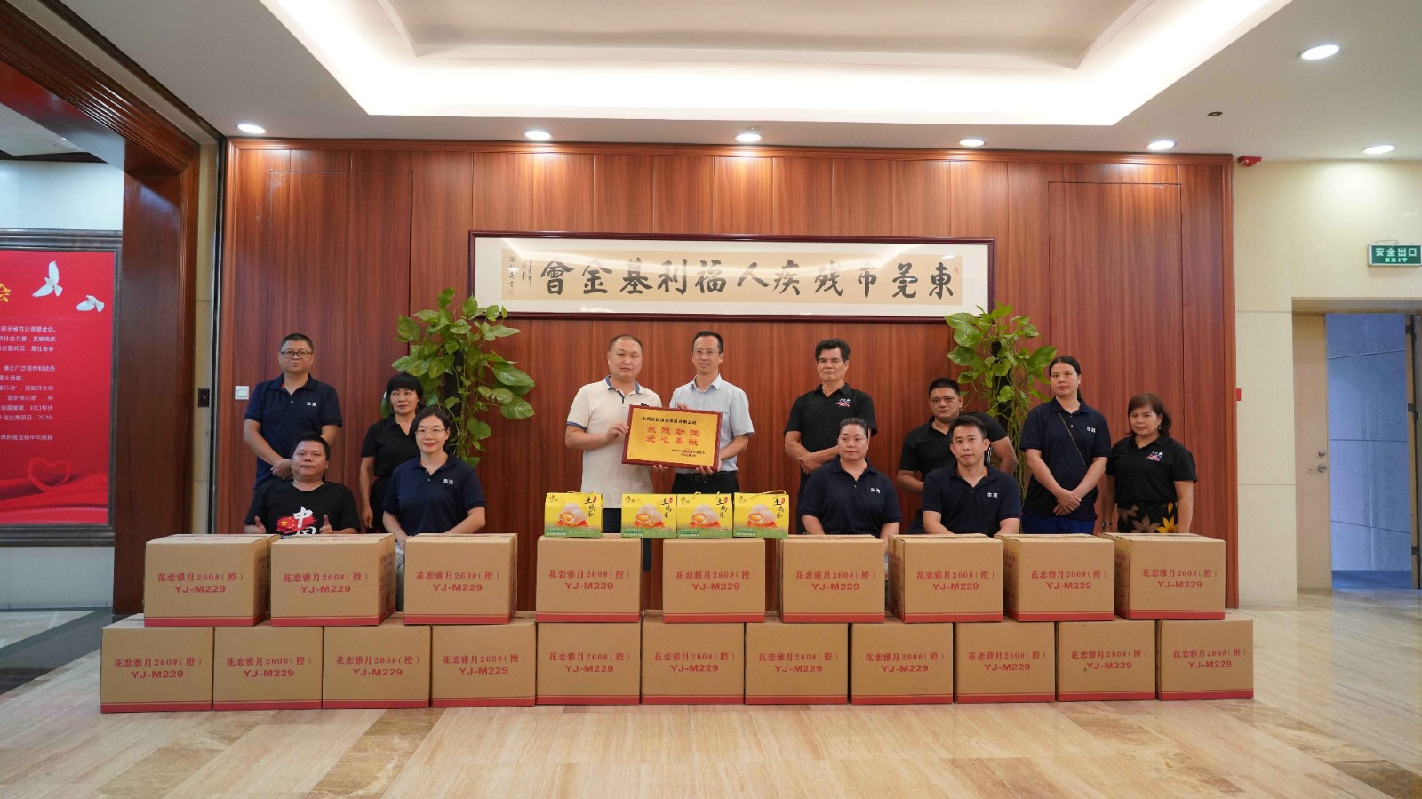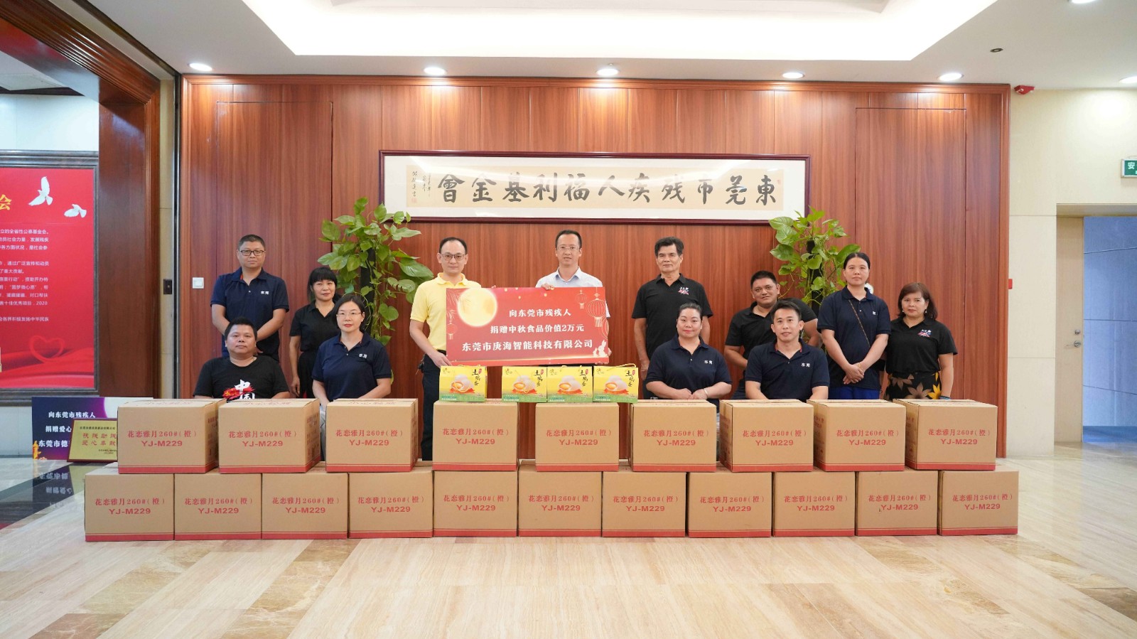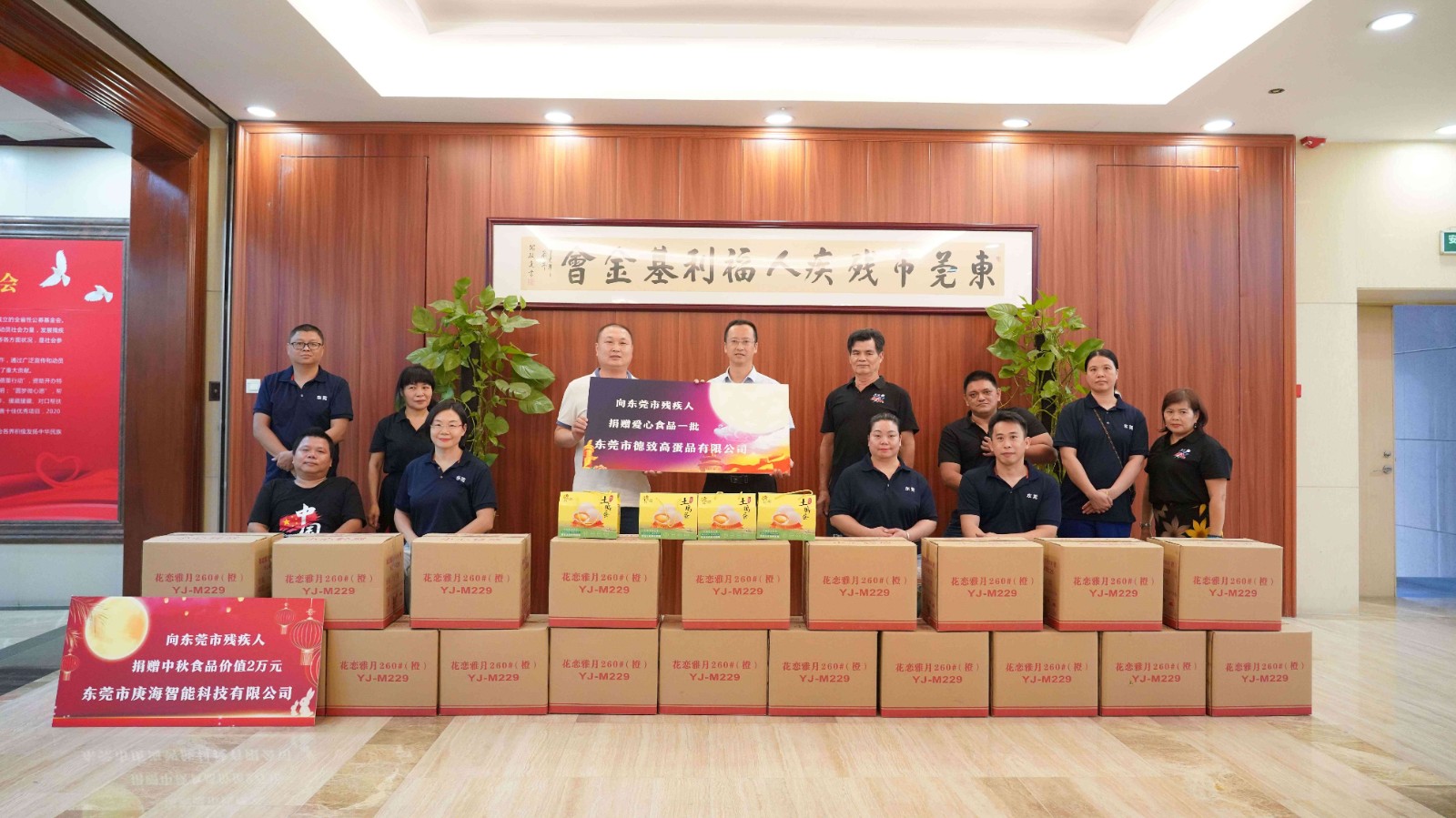 中秋佳节来临之际,东莞市庚海智能科技有限公司、东莞市德致高蛋品有限公司、东莞市德堡有限公司向我会捐赠一批爱心物资。我会理事长叶宝维,副会长谢忠艺,副秘书长鲁超,庚海有限公司总经理罗振海,德致有限公司总经理石汉轩,德堡有限公司总经理汪志军和残疾人代表参加捐赠仪式。