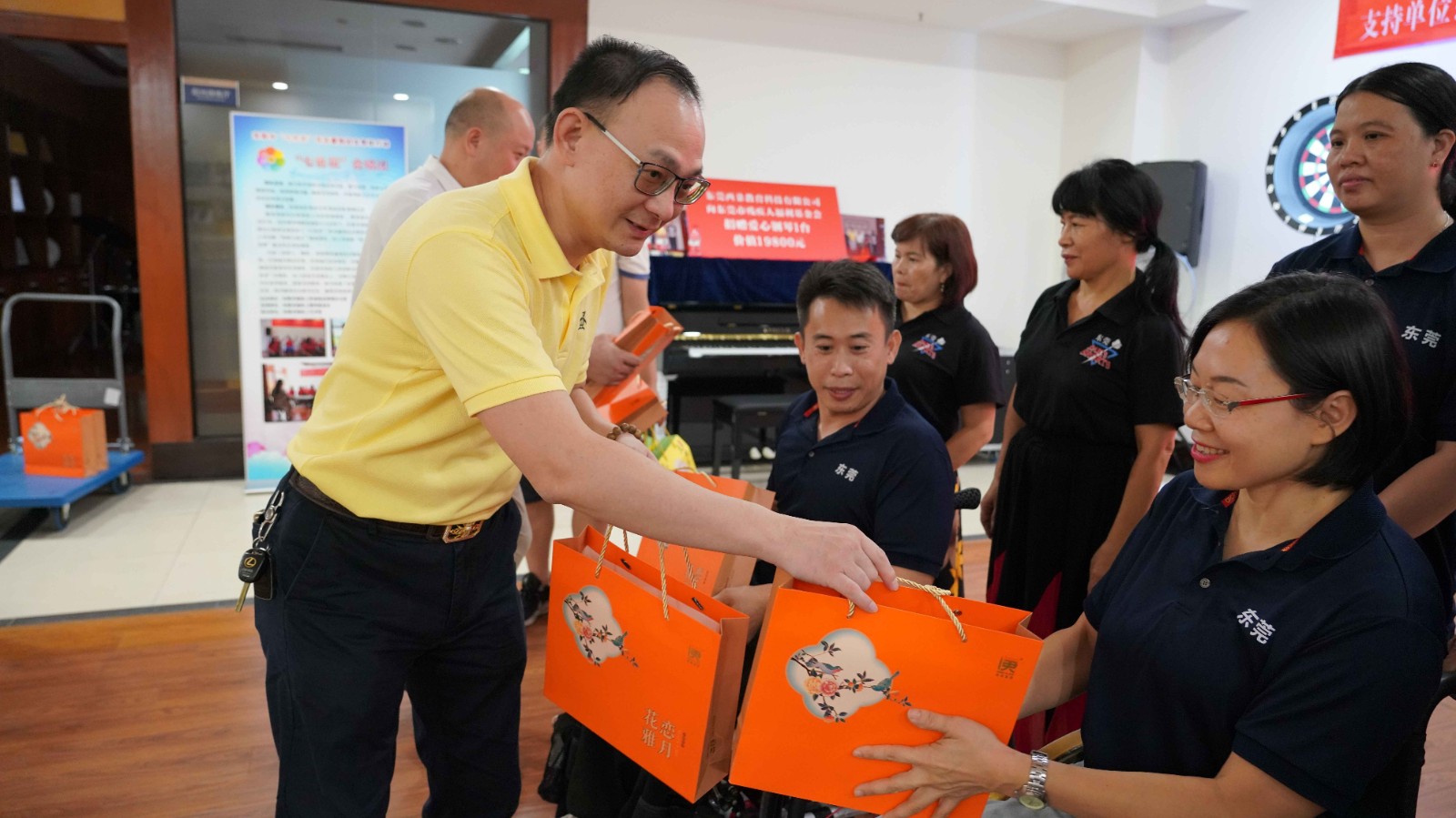 活动现场,爱心企业家和我会领导共同向残疾人运动员代表发放中秋物资,并与运动员们进行了亲切的交流和比赛互动,充满了残健融合的爱心氛围。
