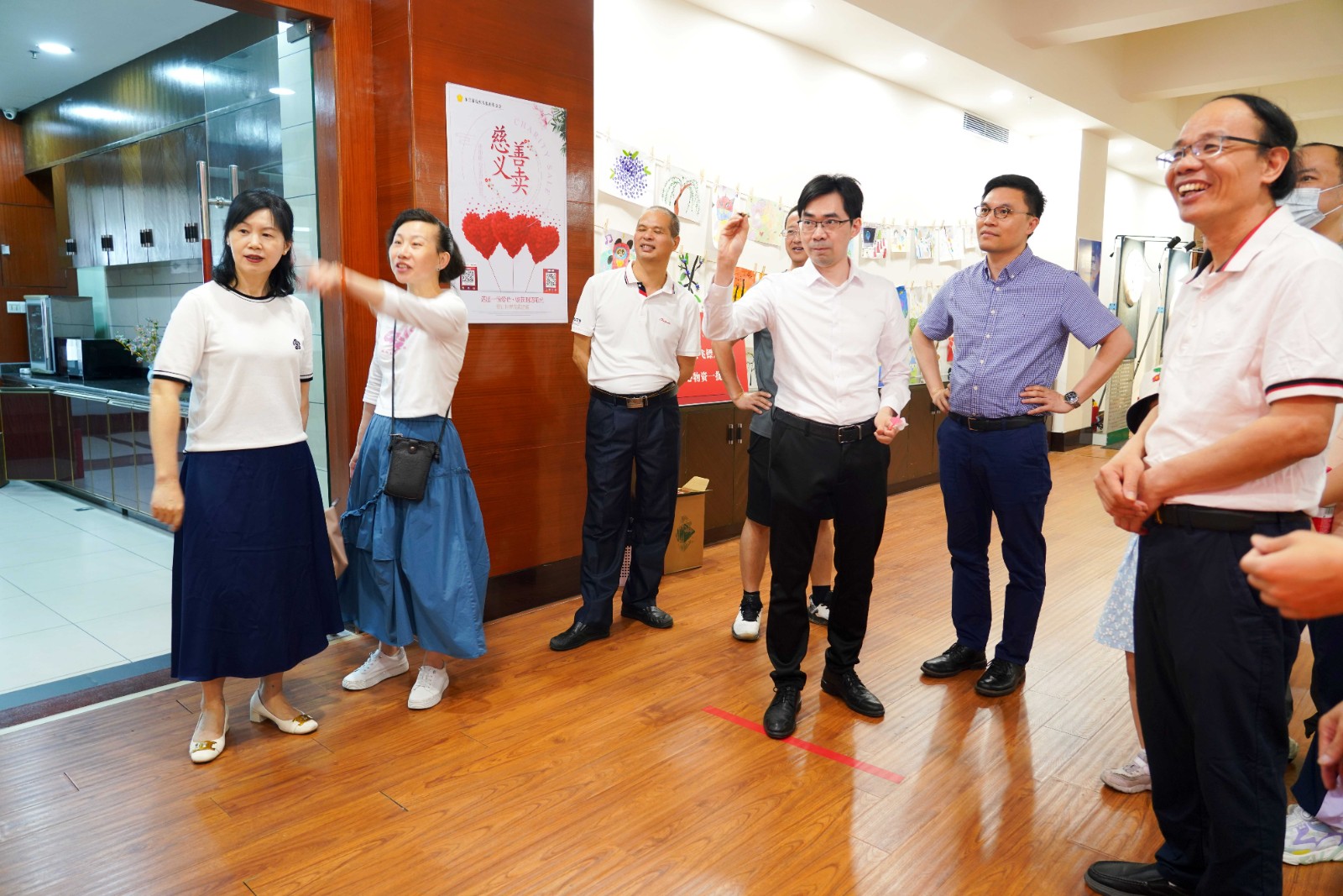 致公党第四支部、万江支部一行领导首先参观了基金会公益项目爱心展示走廊,我会副会长谢忠艺给大家讲解了基金会的成立背景和助残项目,让大家对基金会有了更深的了解。领导们还参观了残艺团、飞镖队、多功能厅、康健活动厅、残健书画室等项目和场地,对我会基地的场地设备以及助残项目表示认可和赞赏。
