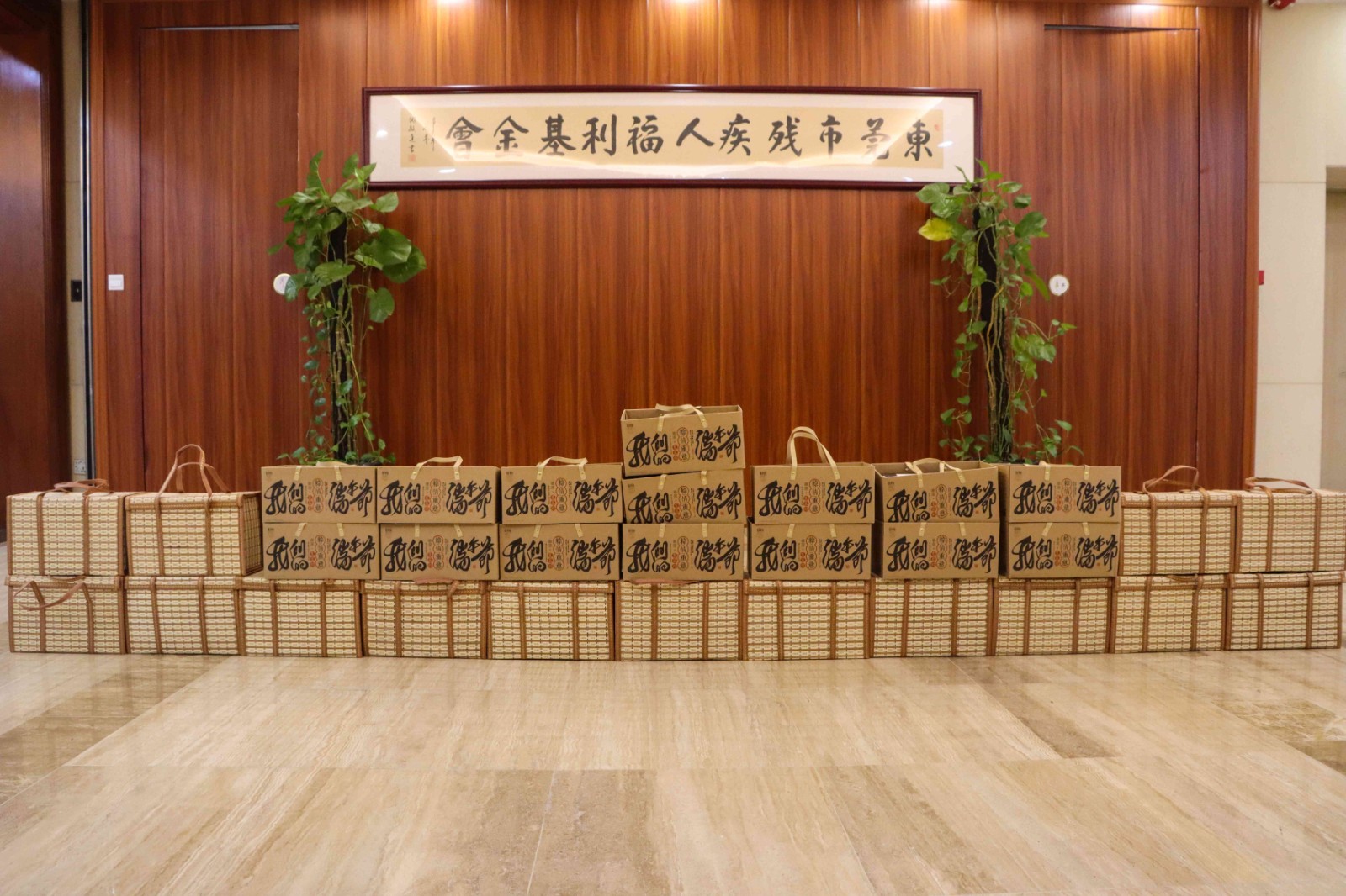 港月酒业董事长卢秋月表示,不忘初心,回报社会,这是企业的社会责任,她将带领企业继续秉持关怀残疾人之心,以实际行动帮助残疾人群体,让更多的残疾人感受到社会大家庭的温暖。卢秋月董事长亲自为残艺团和飞镖队成员们送上了爱心棕子,并表示在礼盒里加入了亲手题字,祝愿大家生活美满,幸福安康。