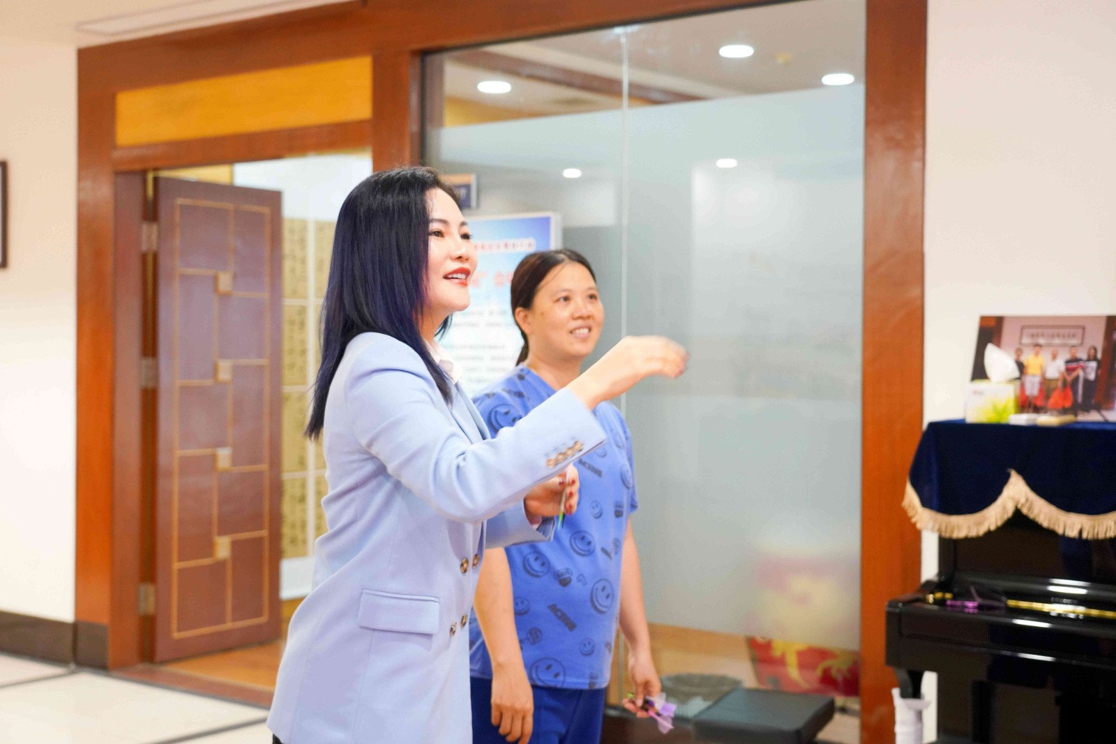 董事长卢秋月首先参观了我会公益项目爱心展示走廊,了解我会成立背景以及助残项目,留意到自己在爱心照片墙里的身影,回想起了自己回馈社会、助残扶残的温馨时刻。随后来到了残艺团多功能厅,她亲切地问候了飞镖队运动员,在现场与大家进行了飞镖投掷经验交流的互动。