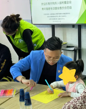 青委会一行人怀揣着满满的爱与关怀,来到东莞市启奥特殊儿童培训中心,与培训中心的孤独症儿童一起参与艺术手工活动,给他们送去关心与鼓励。青委会希望通过这次慰问活动,能够走近他们,走进他们的世界,让他们知道,他们并不孤单。