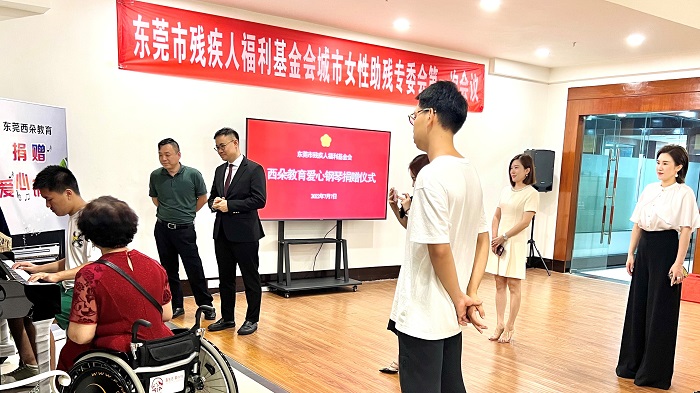 此前,为支持基金会残艺团特殊艺术的发展,西朵教育向基金会捐赠一台价值19800元的阿波罗钢琴,我会理事长叶宝维,西朵教育董事长彭心铭,董事蓝沛君,总经理李娅茜,基金会副秘书长、市残疾人艺术团团长鲁超以及艺术团合唱团演员等参加了捐赠仪式。