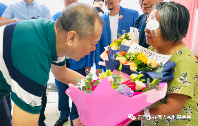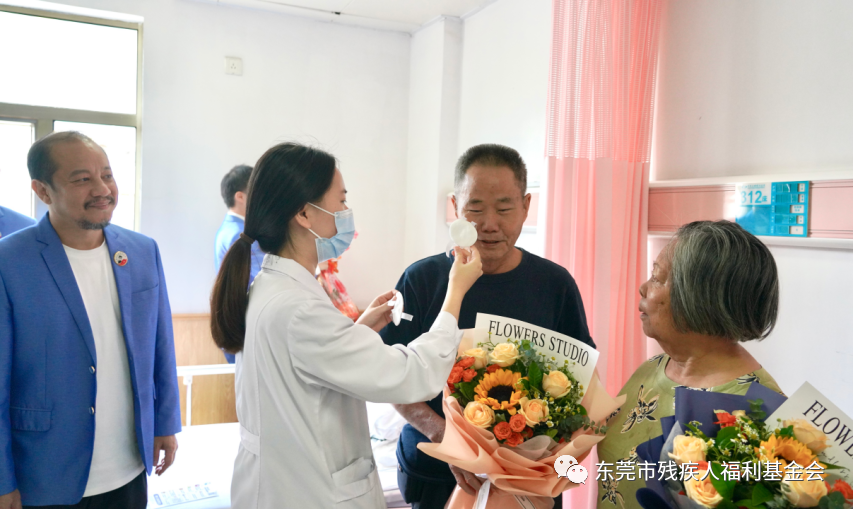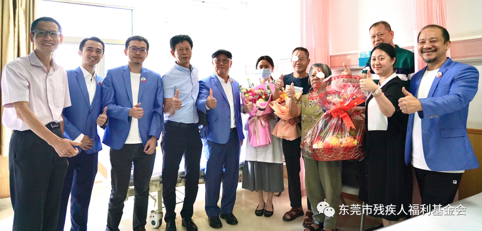 座谈会后,与会领导一起来到3楼病房看望慰问首批白内障手术复明的两位香港莞籍同胞,送上鲜花和果篮。两位老人家抑制不住内心的激动连声道谢,表示感谢市残疾人福利基金会和香港东莞莞城同乡会开展了这么好的惠民项目,让他们可以不花一分钱重见光明,感谢市委统战部、市残联、莞城街道的关心,同时也感谢光明眼科医院医生和护士无微不至的照顾和服务。
