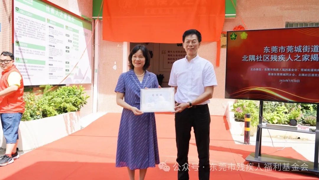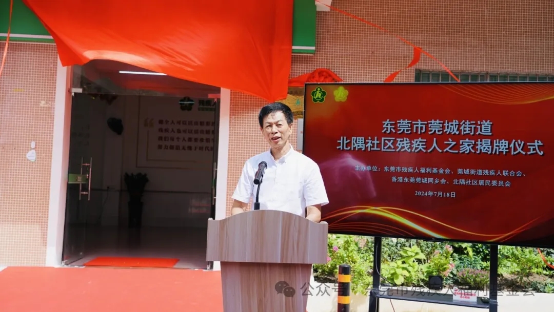 7月18日,莞城街道北隅社区举行“残疾人之家”揭牌仪式,残疾人之家的正式启用,将进一步完善残疾人社会保障制度和关爱服务体系建设,有效提升残疾人的获得感、幸福感和安全感,为实施“百千万工程”助力。东莞市残疾人福利基金会会长、香港东莞莞城同乡会荣誉会长许绍伟,莞城街道党工委委员、残联主席张永红,香港东莞莞城同乡会副会长李侃,莞城北隅社区书记苏月珠,莞城残联理事长陈浩军,北隅社区专职委员、康复员、残疾人代表等四十多人参加揭牌仪式。