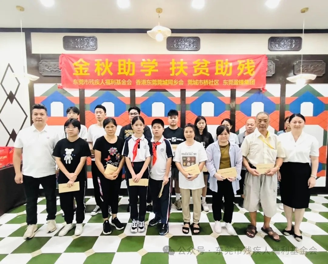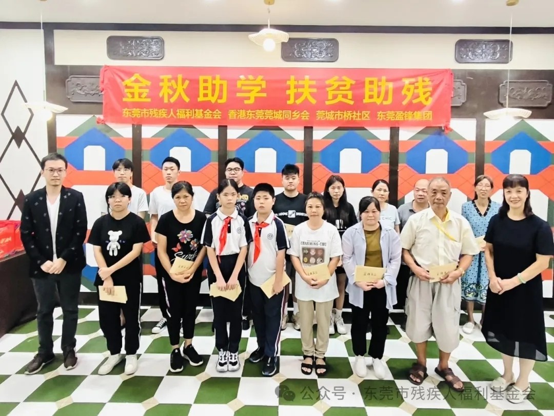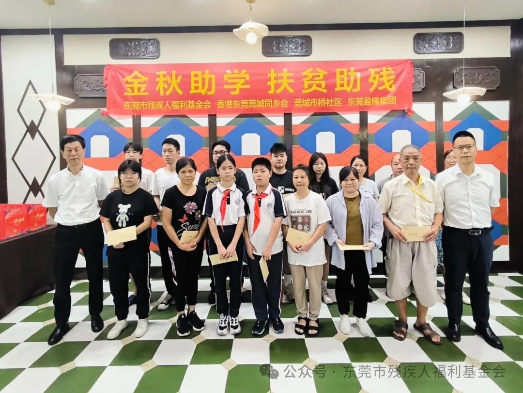 善行促进社会和谐,仁爱之心传递美德。为扎实推动“百千万工程”助力东莞高质量发展,关爱和支持经济困难及残疾人士家庭子女继续学业。8月30日上午,东莞市残疾人福利基金会、香港东莞莞城同乡会、东莞盈锋集团与莞城市桥社区共同开展“金秋助学、扶贫助残”中秋慈善慰问活动。