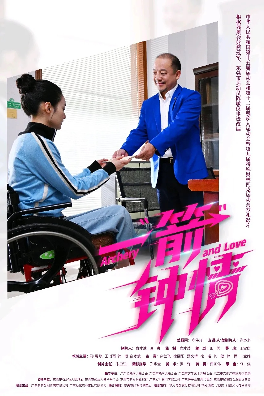 《一“箭”钟情》以东莞“石龙妹”射箭运动员陈敏仪奋斗故事为原型进行改编,讲述了主角“陈赢”从初遇射箭时的懵懂与憧憬,到伤病困扰下的挣扎与坚守,再到登顶残奥冠军领奖台时的荣耀与从容,影片细腻刻画了残疾人运动员直面命运挑战、追逐人生梦想的感人事迹,是一部典型的励志电影。