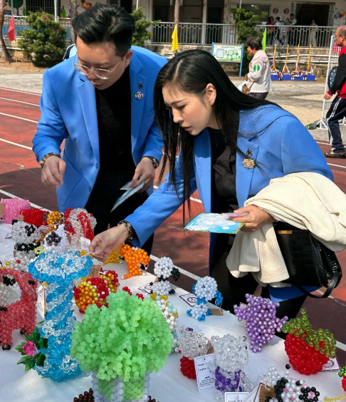 现场同步开展的“捻指尖生花,呈集市筑梦”非遗手工艺品义卖区,展出学员制作的非遗元素手工文创作品。通过“非遗义卖集市”的形式,不仅让学员们感受到创作的价值,更搭建了一个与社会交流的桥梁。基金会理事、青委会会长曾俊人现场购买了残疾学员的手工文创作品,合计手工艺品210件,共8892元。