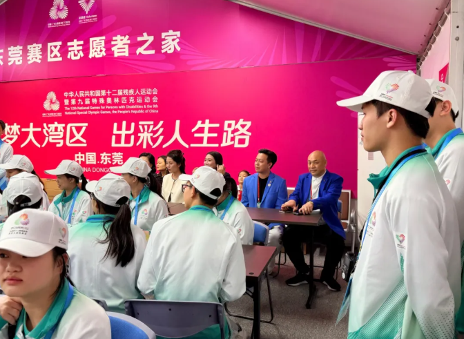 为保障残特奥会聋人篮球(女子组)赛事顺利开展,东莞从本土两所高校中遴选出321名青年组成赛会志愿服务团队。他们提前完成通用手语、助残通识、医疗辅助等专项培训,分布在运动员引导、礼宾接待、场地服务、技术援助、观众疏导等56个岗位开展志愿工作,以高效协作保障赛事平稳运转。这群“小海豚”用专业与热情,搭建起连接赛事与参与者的温暖桥梁,让“平等、参与、共享、融合”的赛事理念,在每一个服务细节中落地生根。