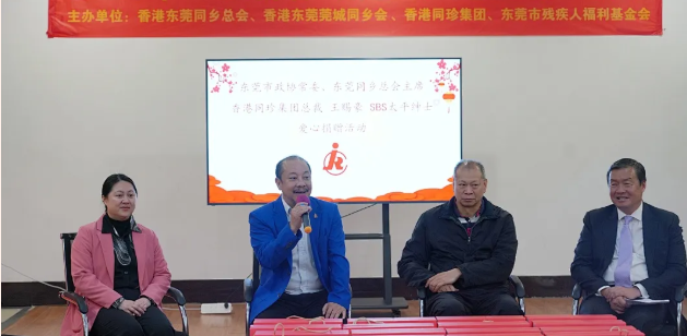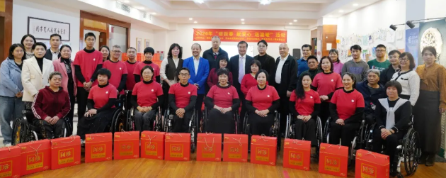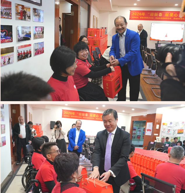 为深入贯彻公益宗旨,传递社会温暖,切实关爱残疾人群体,值此2026年新春佳节来临之际,2月11日上午,东莞市残疾人福利基金会与香港同珍集团联合举办“迎新春 献爱心 送温暖”慰问活动。莞城街道党工委委员萧健峰、统战办主任赵秀茵,市政协常委、市残疾人福利基金会荣誉会长、东莞同乡总会主席、香港同珍集团总裁王赐豪SBS太平绅士,市残疾人福利基金会理事长叶宝维、理事王庆余,以及市残疾人艺术团、市残疾人飞镖队代表们齐聚一堂,以爱心为桥梁,以温暖为伴,让这份新春的关怀得以顺利传递到每一位需要帮助的残疾朋友心中。